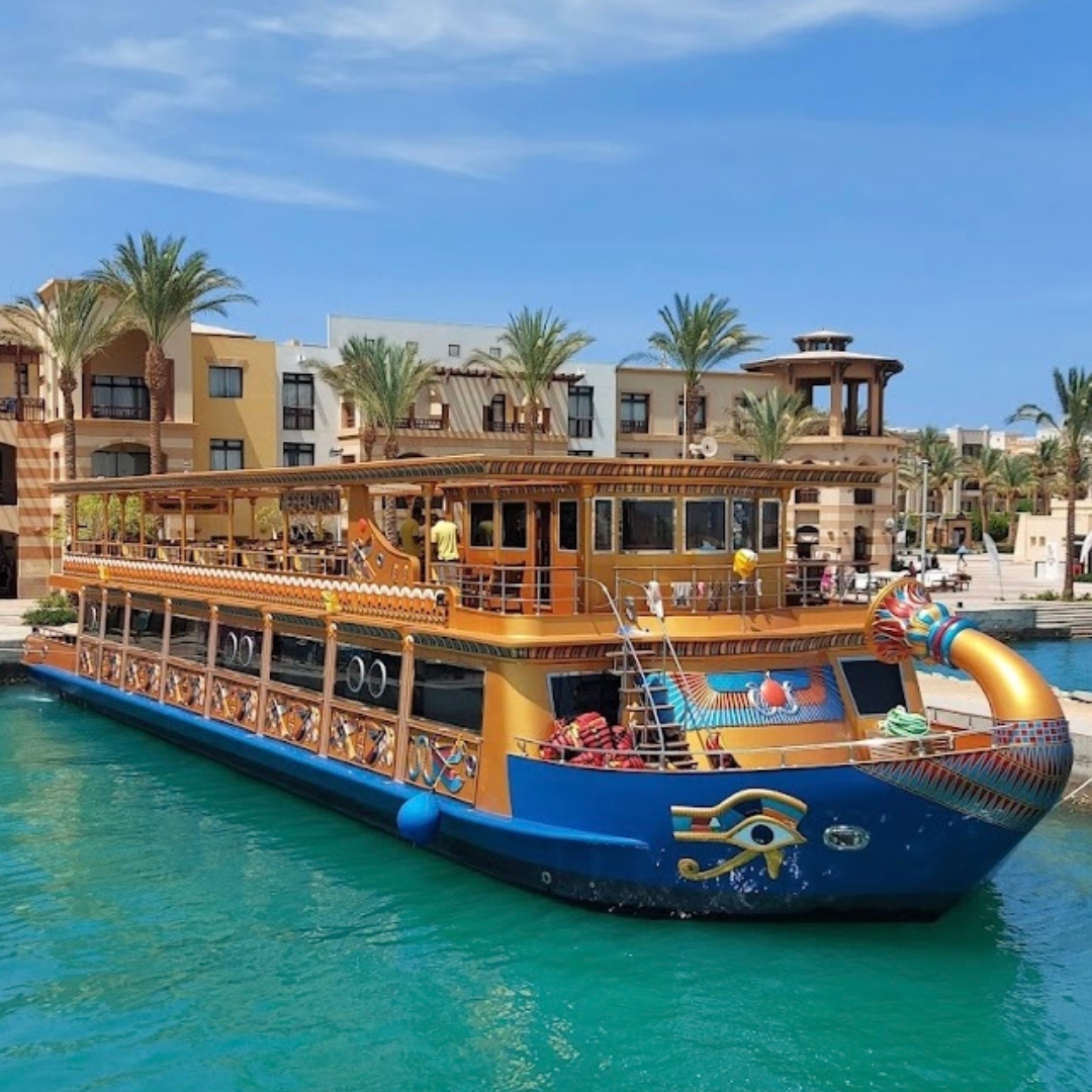 Przeżyj niezapomnianą morską przygodę na ekskluzywnym statku Nefertari! Podziwiaj zachwycające rafy koralowe i egzotyczne ryby przez panoramiczne okna znajdujące się pod pokładem statku. Następnie zanurz się w krystalicznie czystych wodach Morza Czerwonego podczas snurkowania przy najpiękniejszych rafach. Na pokładzie czeka na Ciebie elegancki, klimatyzowany salon oraz wyjątkowa atrakcja – możliwość założenia strojów faraonów i udziału w pamiątkowej sesji zdjęciowej. Rejs zakończysz pysznym posiłkiem (obiad lub kolacja – w zależności od wybranej godziny). Do wyboru: owoce morza, kurczak lub opcja wegetariańska. To idealne połączenie relaksu, zwiedzania podwodnego świata i odrobiny egipskiego klimatu w luksusowym wydaniu.
