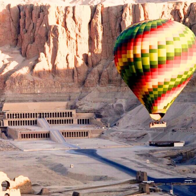 Przekonajcie się, jak Luksor, dawne Teby, ukazuje swe cuda nad Nilem! Rozpocznijcie ekscytującą podróż lotem balonem nad ranem abyście mogli podziwiać wschód słońca nad tym historycznymi terenami. Potem rozkoszujcie się tajemnicami Świątyni Karnak, grobowcami Doliny Królów, imponującą świątynią królowej Hatszepsut i kolosami Memnona. To niezapomniane doświadczenie z historią na wyciągnięcie ręki!
